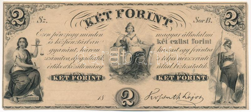~1852-1860. 2Ft "Kossuth bankó", "B" sorozat, kitö... https://www.darabanth.com/de/444-Fernauktion/444.0/Numismatik/Ungarische-Banknoten~1000007/7E1852-1860-2Ft-Kossuth-banko-B-sorozat-kitoltetlen-TAU-Hungary-7E1852-1860-2-Forint-B-w~II2929076