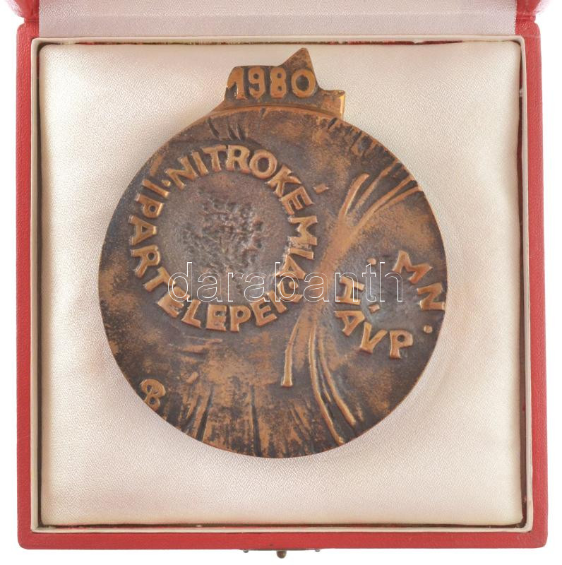 1980. "Nitrokémiai Ipartelepek - MN HÁVP" szignózott bronz plakett tokban (115-98mm) T:AU