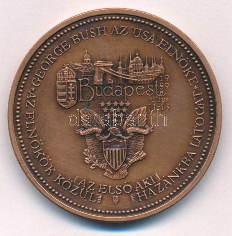 Bozó Gyula (1913-2004) 1989. "George Bush látogatása Magyarországon" kétoldalas bronz emlékérem (42,5mm) T:UNC kis patina