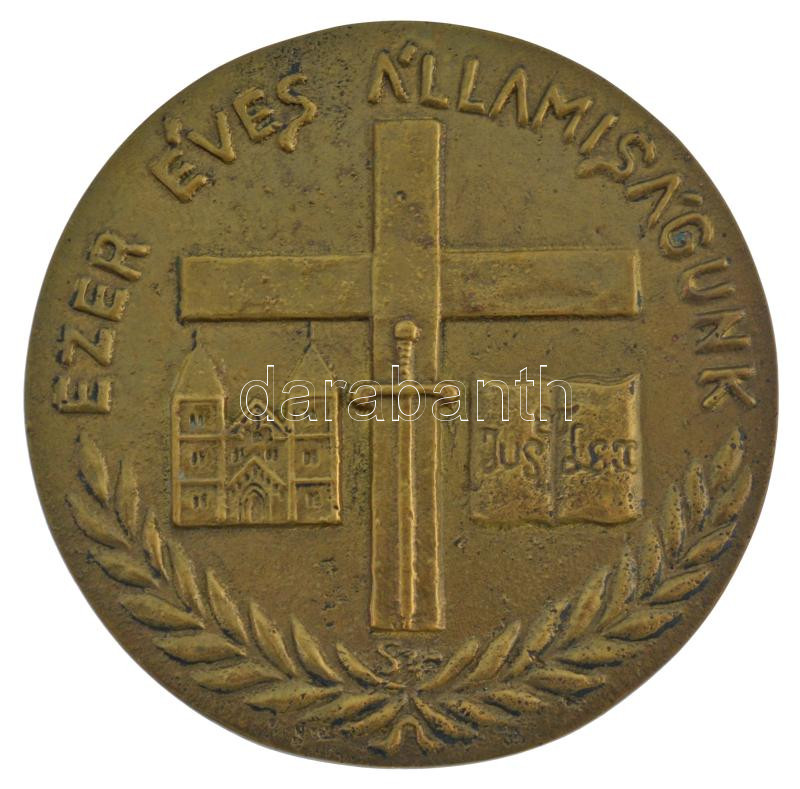 DN "Ezer éves államiságunk" kétoldalas bronz emlékplakett feloldatlan szignóval (98mm) T:1-