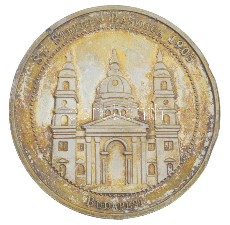 DN "St. Stephanus Rex Hungarorum / St. Stephen Basilica 1905 Budapest" aranyozott fém emlékérem (31mm) T:XF patina, kopott aranyozás, ph