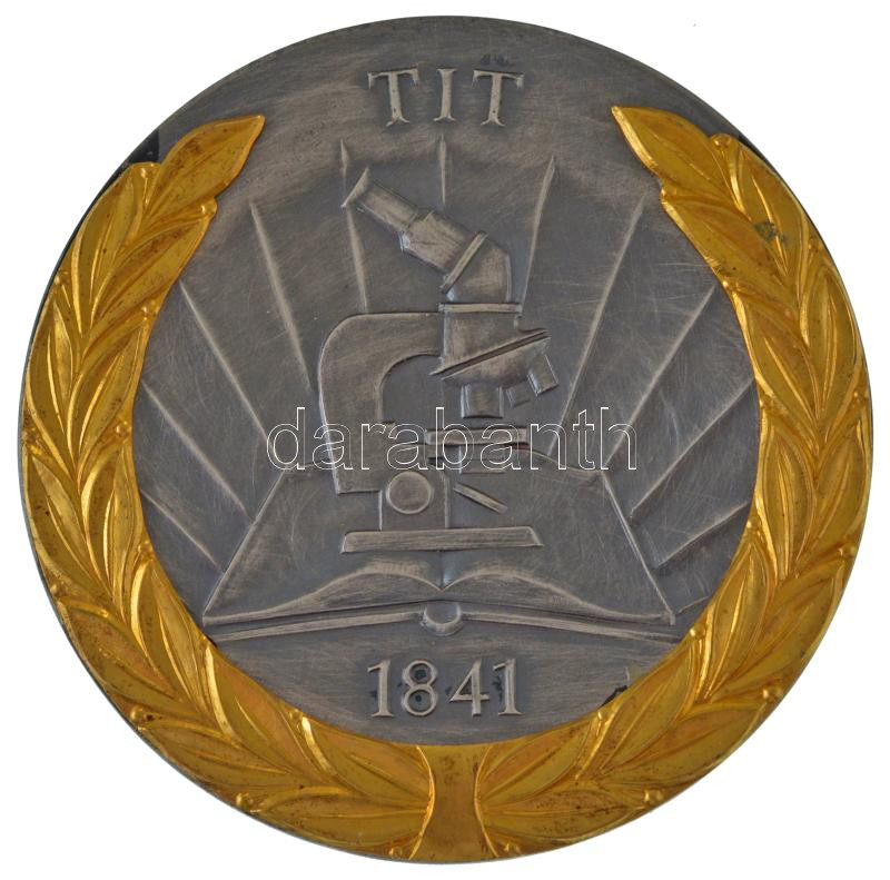 DN "TIT (Tudományos Ismeretterjesztő Társulat) 1841" aranyozott fém emlékplakett dísztokban (94mm) T:AU