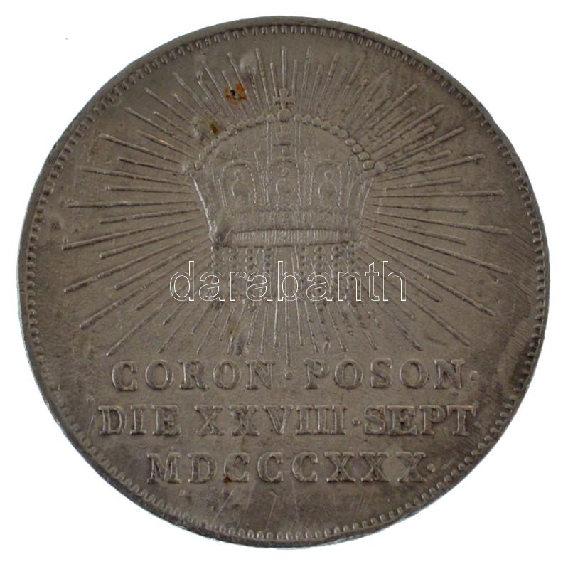 Habsburg Birodalom / Pozsony 1830. szeptember 28. Koronázási zseton Ag "I. Ferenc - V. Ferdinánd" (5,49g/25mm) T:F peremhiba / Habsburg Monarchy / Bratislava 28 September 1830. Coronation Silver Jeton Ag "Franz I - Ferdinand V" (5,49g/25mm) C:F edge error HTÉ.: 899.