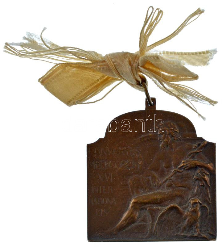 Ifj. Vastagh György (1868-1946) 1909. "XVI. Nemzetközi Orvos Kongresszus - Budapest" bronz emlékplakett szalagon. "MCMIX BUDAPESTINI / CONVENTUS MEDICORUM XVI INTERNATIONALIS" (44x40mm) T:AU viseltes szalag Hungary 1909. "16th International Medical Congress" bronze commemorative plaque with ribbon. Sign: György Vastagh, Ifj. (44x40mm) C:AU worn ribbon HP 6363., HV 1398.