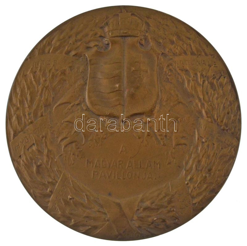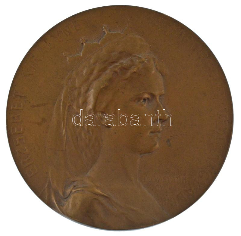 Ifj. Vastagh György (1868-1946) 1911. "Erzsébet királyné - Magyarország védő angyala / Drezdai Egészségügyi Világkiállítás - A Magyar Állam Pavillonja" bronz emlékérem (60mm) T:AU kis patina Hungary 1911. "Queen Elisabeth - Protector angel of Hungary / International Hygiene Exhibition in Dresden" commemorative bronze medallion. Sign: György Vastagh Ifj. (60mm) C:AU small patina HP 6364.