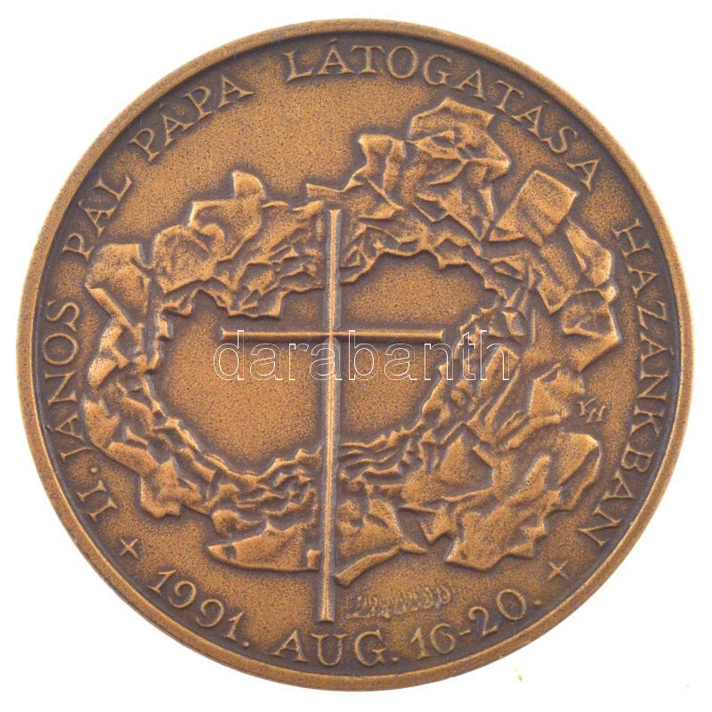 Kiss György (1943-) 1991. "II. János Pál pápa látogatása hazánkban" bronz kétoldalas emlékérem műanyag tokban (42mm) T:1-