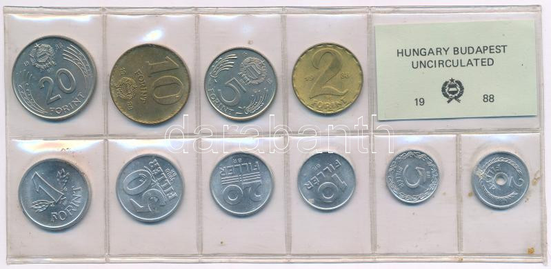 1988. 2f-20Ft (10xklf) érmés forgalmi sor fóliatokban T:UNC Adamo FO21 https://www.darabanth.com/de/444-Fernauktion/444.0/Numismatik/Ungarische-Kursmunzsatze~1000021/1988-2f-20Ft-10xklf-ermes-forgalmi-sor-foliatokban-TUNC-Adamo-FO21~II2928037