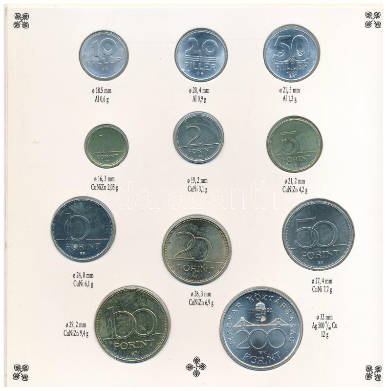 1993. 10f-200Ft (11xklf) forgalmi sor, benne 200Ft Ag "MNB", "Magyarország pénzérméi" karton dísztokban, belső tok ragasztása kissé elengedett T:BU patina Adamo FO26