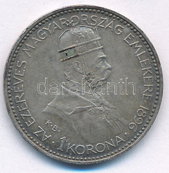 Adamo K5.2 https://www.darabanth.com/de/444-Fernauktion/444.0/Numismatik/Ungarische-Munzen-und-Munzen-mit-ungarischem-Munzzeichen~1000008/1896KB-1K-Ag-Millennium-TXF-patina-Adamo-K52~II2933307