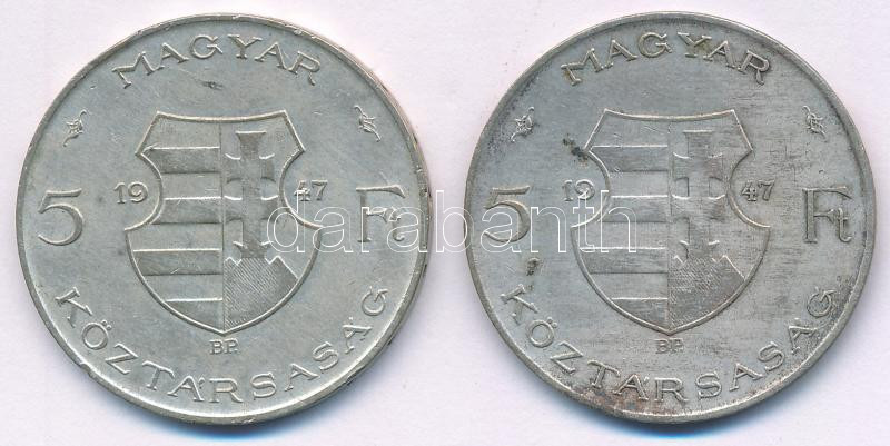 Beschreibung: 1947. 5Ft Ag "Kossuth" (2db) T:VF,F patina