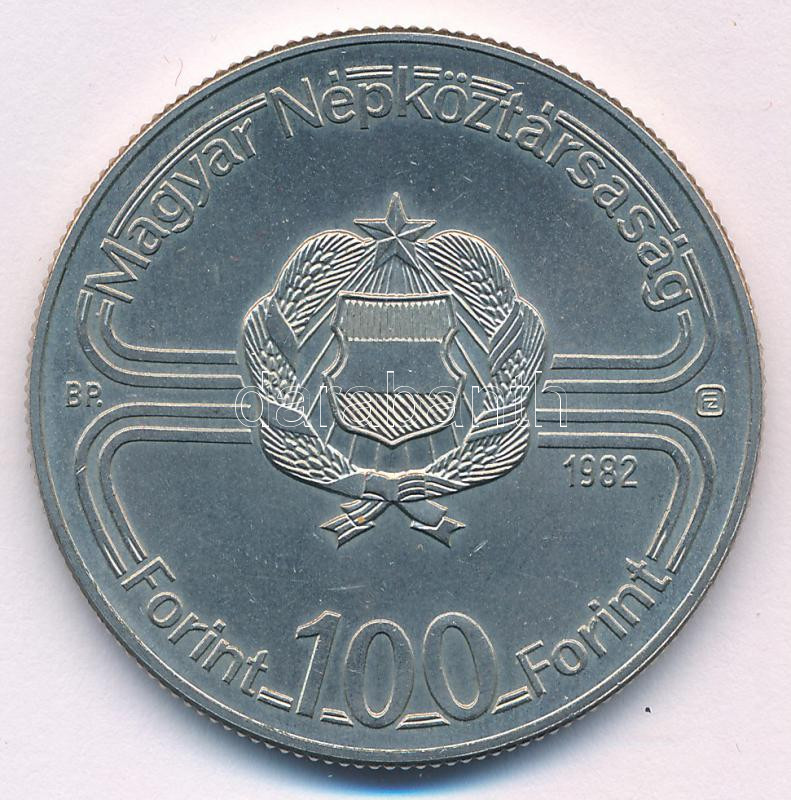 1982. 100Ft Cu-Ni "Labdarúgó világbajnokság 1982" T:AU kis k... https://www.darabanth.com/de/444-Fernauktion/444.0/Numismatik/Ungarische-Munzen-und-Munzen-mit-ungarischem-Munzzeichen~1000008/1982-100Ft-Cu-Ni-Labdarugo-vilagbajnoksag-1982-TAU-kis-karc~II2926266