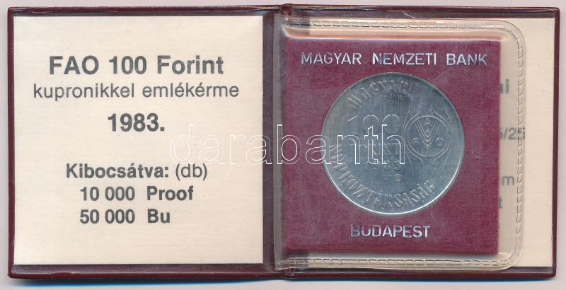1983. 100Ft Cu-Ni "FAO - Több gabonát a világnak" műbőr tokb... https://www.darabanth.com/de/444-Fernauktion/444.0/Numismatik/Ungarische-Munzen-und-Munzen-mit-ungarischem-Munzzeichen~1000008/1983-100Ft-Cu-Ni-FAO-Tobb-gabonat-a-vilagnak-mubor-tokban-tanusitvannyal-TBU-Adamo-EM~II2929722