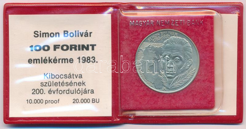 1983. 100Ft alpakka "Simon Bolivár" műbőrtokban, tanúsítvánn... https://www.darabanth.com/de/444-Fernauktion/444.0/Numismatik/Ungarische-Munzen-und-Munzen-mit-ungarischem-Munzzeichen~1000008/1983-100Ft-alpakka-Simon-Bolivar-mubortokban-tanusitvannyal-TBU~II2929716