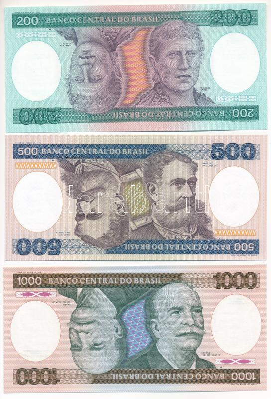 Brazil 1984. 200 Cruzeiros + 1985. 500 Cruzeiros + 1986. 1000 Cruzeiros C:UNC