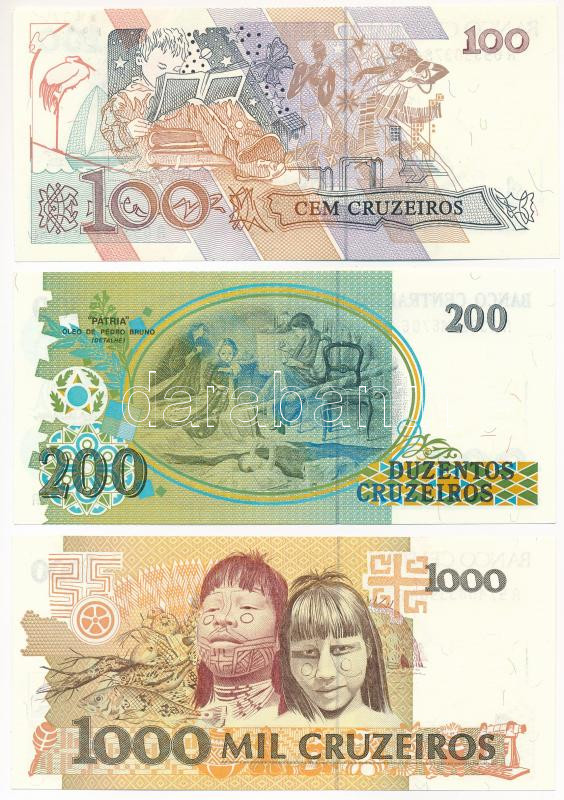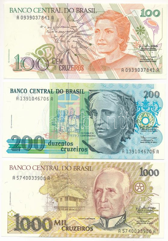 Brazil 1990. 100 Cruzeiros + 200 Cruzeiros + 1990-1991. 1000 Cruzeiros C:UNC