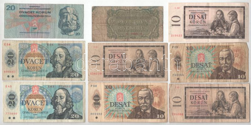 Czechoslovakia 1960-1988.... https://www.darabanth.com/de/444-Fernauktion/444.0/Numismatik/Weltweit-Banknoten~1000013/Csehszlovakia-1960-1988-5K-20K-9db-TF-G-Czechoslovakia-1960-1988-5-Korun-20-Korun-9pcs-C~II2931620