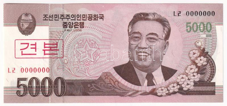 Nor... https://www.darabanth.com/de/444-Fernauktion/444.0/Numismatik/Weltweit-Banknoten~1000013/Eszak-Korea-2008-5000W-MINTA-felulbelyegzessel-TUNC-North-Korea-2008-5000-Won-with-SPECIM~II2912017