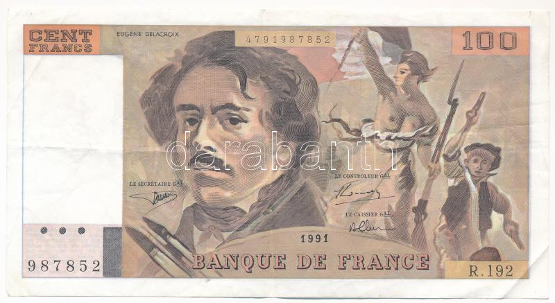 France 1991. 100 Francs C:F... https://www.darabanth.com/de/444-Fernauktion/444.0/Numismatik/Weltweit-Banknoten~1000013/Franciaorszag-1991-100Fr-TF-szep-papir--France-1991-100-Francs-CF-fine-paper-Krause-P23152~II2910929