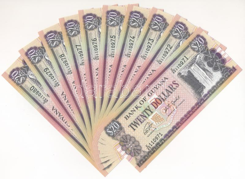 Guyana DN (2018) 20$ (10x) sorszámkövetők "C/65 110971-C/65 11098... https://www.darabanth.com/de/444-Fernauktion/444.0/Numismatik/Weltweit-Banknoten~1000013/Guyana-DN-2018-20USD-10x-sorszamkovetok-C65-110971-C65-110980-TUNC-Guyana-ND-2018-20-Do~II2899639
