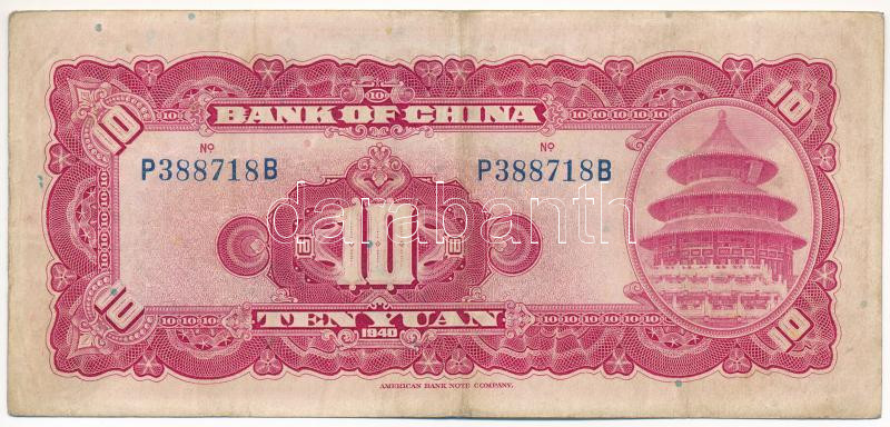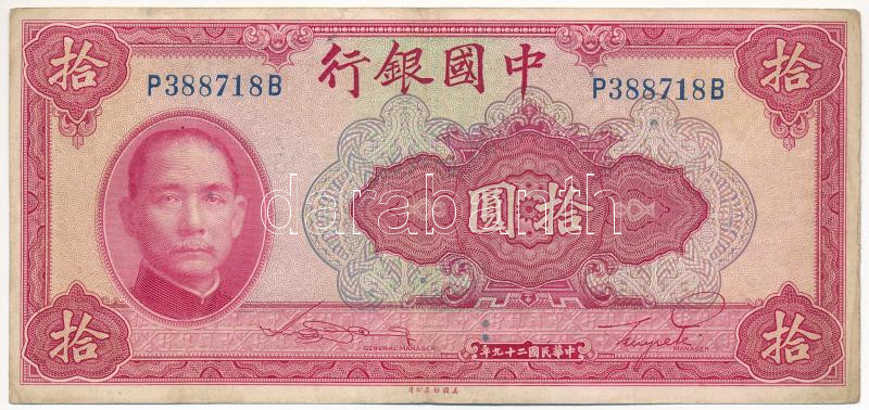 Kína 1940. 10Y T:F China 1940. 10 Yuan C:F Krause P#85 https://www.darabanth.com/de/444-Fernauktion/444.0/Numismatik/Weltweit-Banknoten~1000013/Kina-1940-10Y-TF-China-1940-10-Yuan-CF-Krause-P2385~II2933929