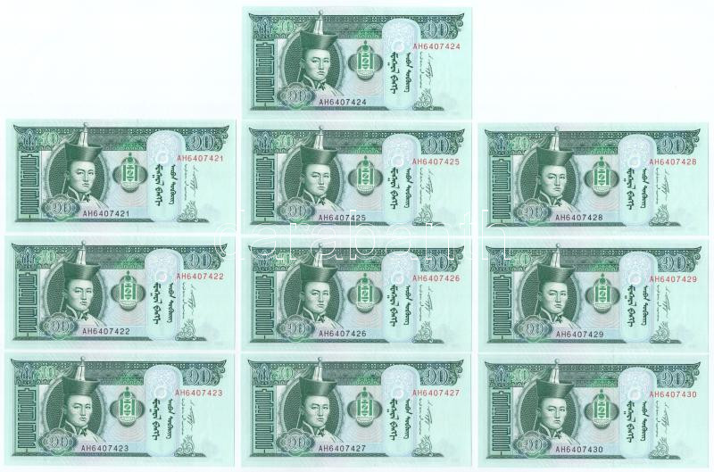 Mongólia 2011. 10T (10x) sorszámkövetők "AH 6407421 - AH 6407430&... https://www.darabanth.com/de/444-Fernauktion/444.0/Numismatik/Weltweit-Banknoten~1000013/Mongolia-2011-10T-10x-sorszamkovetok-AH-6407421-AH-6407430-TI-Mongolia-2011-10-Togro~II2773250