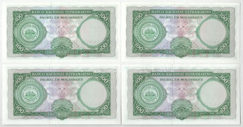 Beschreibung: Mozambik 1961. 100E fekete "BANCO DE MOCAMBIQUE" (4x) sorszámkövetők "C60172297 - C60172300" T:I Mozambique 1961. 100 Escudos with black "BANCO DE MOCAMBIQUE" overprint (4x) conescutive serials "C60172297 - C60172300" C:UNC