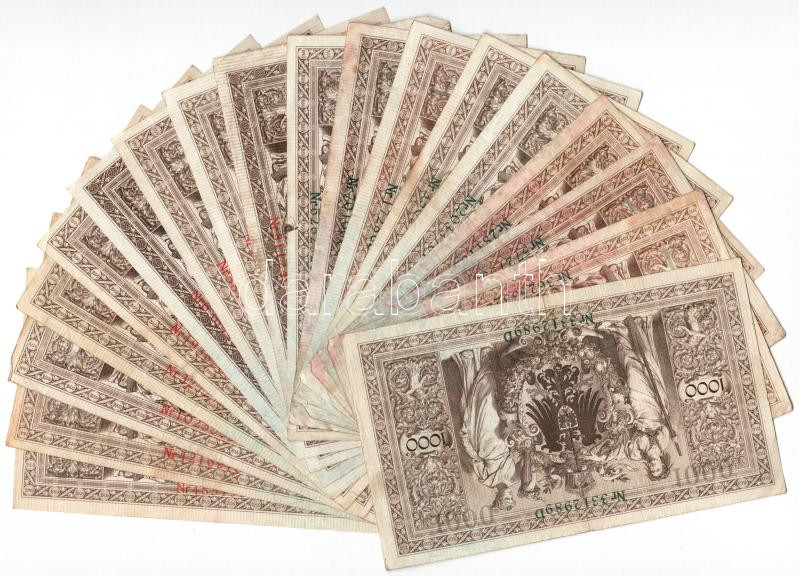 Német Birodalom 1910. 1000M piros pecsét, hétjegyű sorszámmal (9db) + 1910. 1000M zöld pecsét, hétjegyű sorszámmal (9db) T:III folt