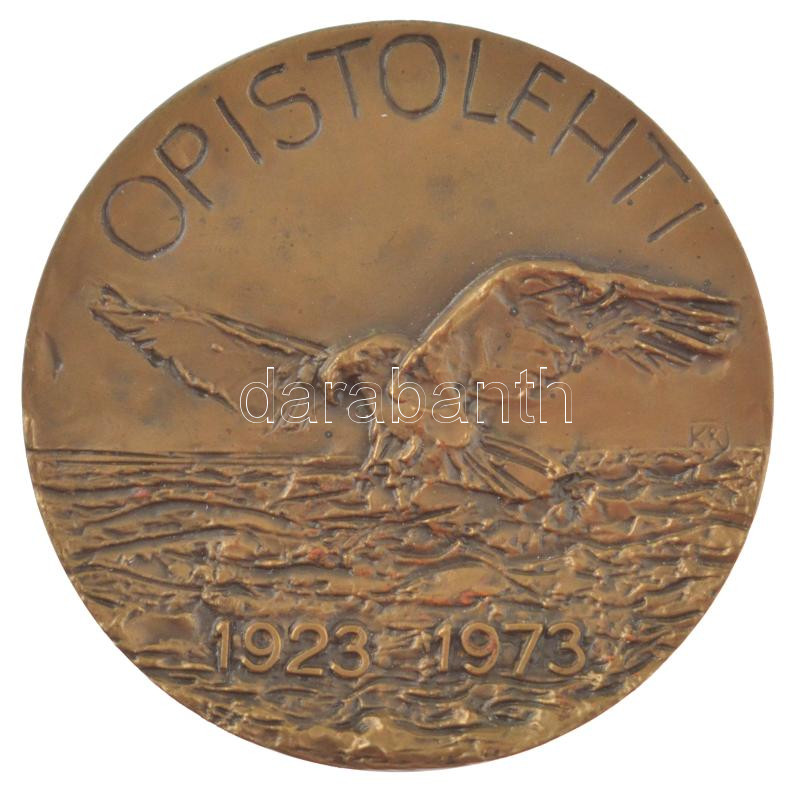 Finnország 1974. "Opistolehti 1923-1973 / Opistotyö 1899-1974" a Finn Polgári Főiskolák Szövetsége 75. évfordulójára kiadott bronz emlékérem, peremén "Kultateollisuus" jelzéssel, eredeti műanyag tokban. Szign.:Kaija-Riitta Iivonen (70mm) T:UNC