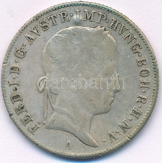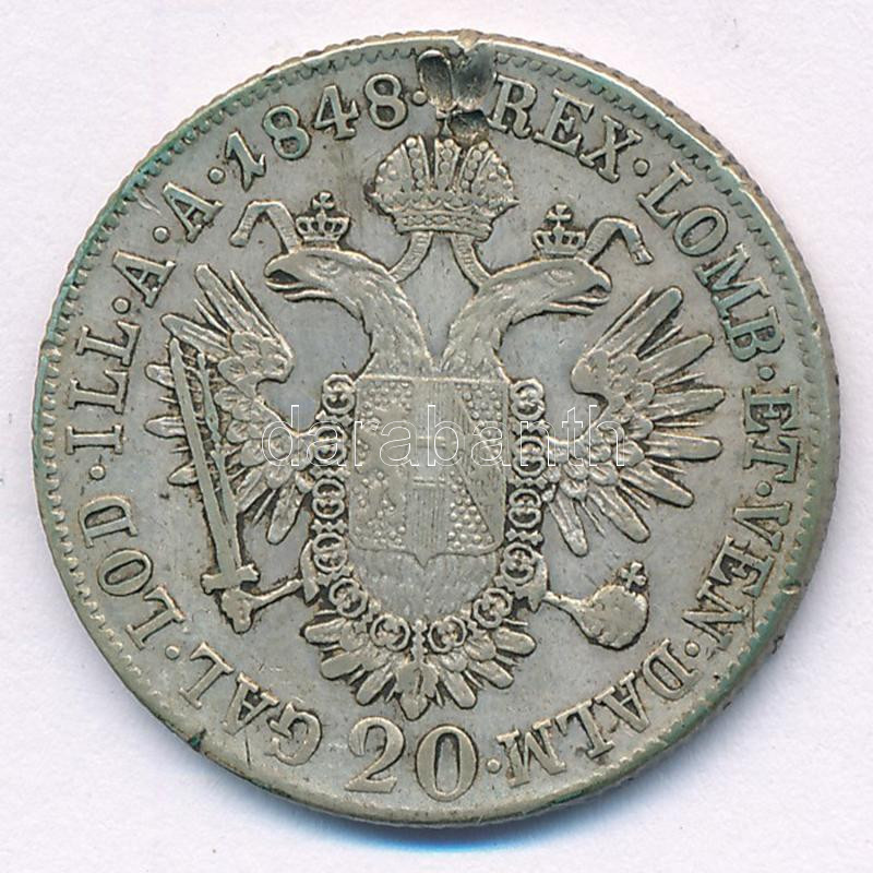 Ausztria 1848A 20kr Ag "I. Ferdinánd" T:VF ly., ph. Austria 1848A 20 Kreuzer Ag "Ferdinand I" C:VF hole, edge error Krause KM#2218