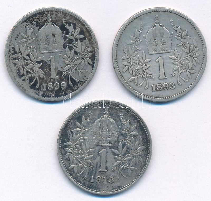 Beschreibung: Ausztria 1894-1915. 1K Ag (3xklf) "Ferenc József" T:VF,F patina