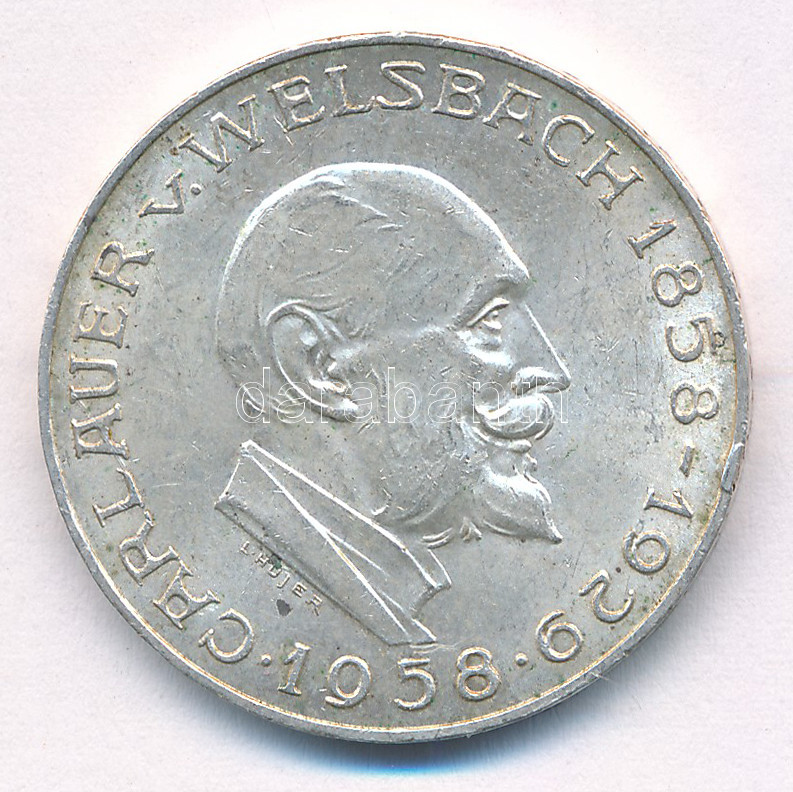 Ausztria 1958. 25Sch Ag "Carl Auer von Welsbach" T:XF patina Austria 1958. 25 Schilling Ag "Carl Auer von Welsbach" C:XF patina Krause KM#2884