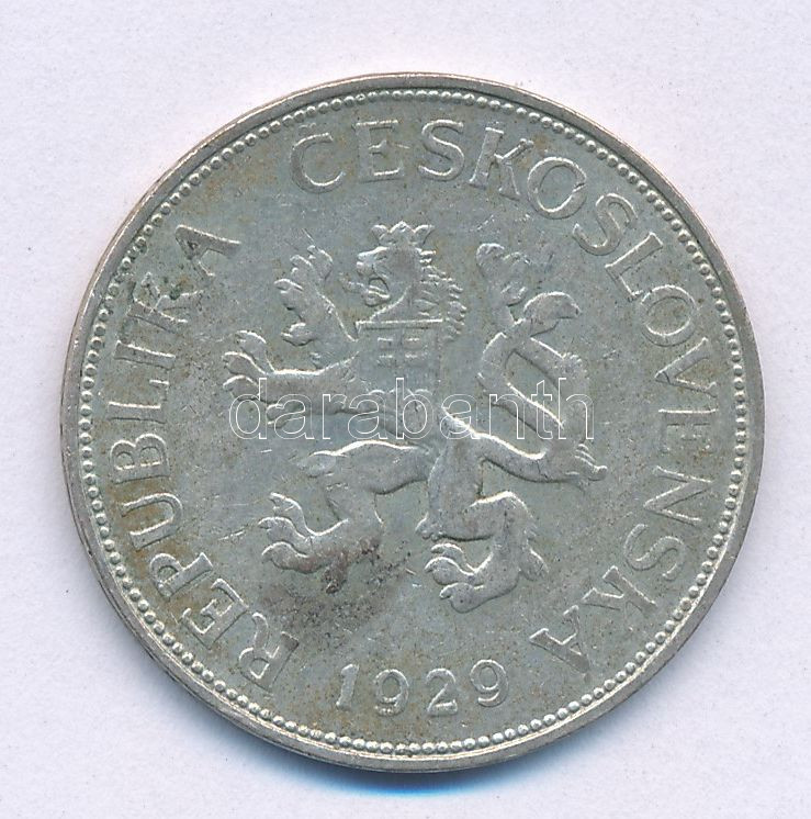 Csehszlovákia 1929. 5K Ag T:XF,VF patina Czechoslovakia 1929. 5 Korun Ag C:XF,VF patina Krause KM#11