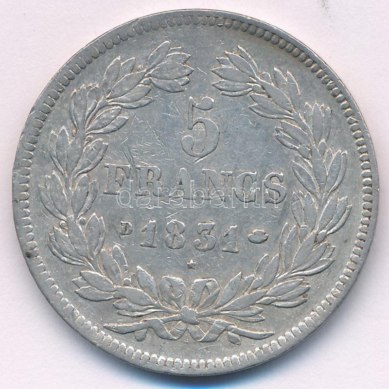 Franciaország 1831D 5Fr Ag "Lajos Fülöp" T:VF ph. France 1831D 5 Francs "Louis Philippe" C:VF edge error Krause KM# 745.4