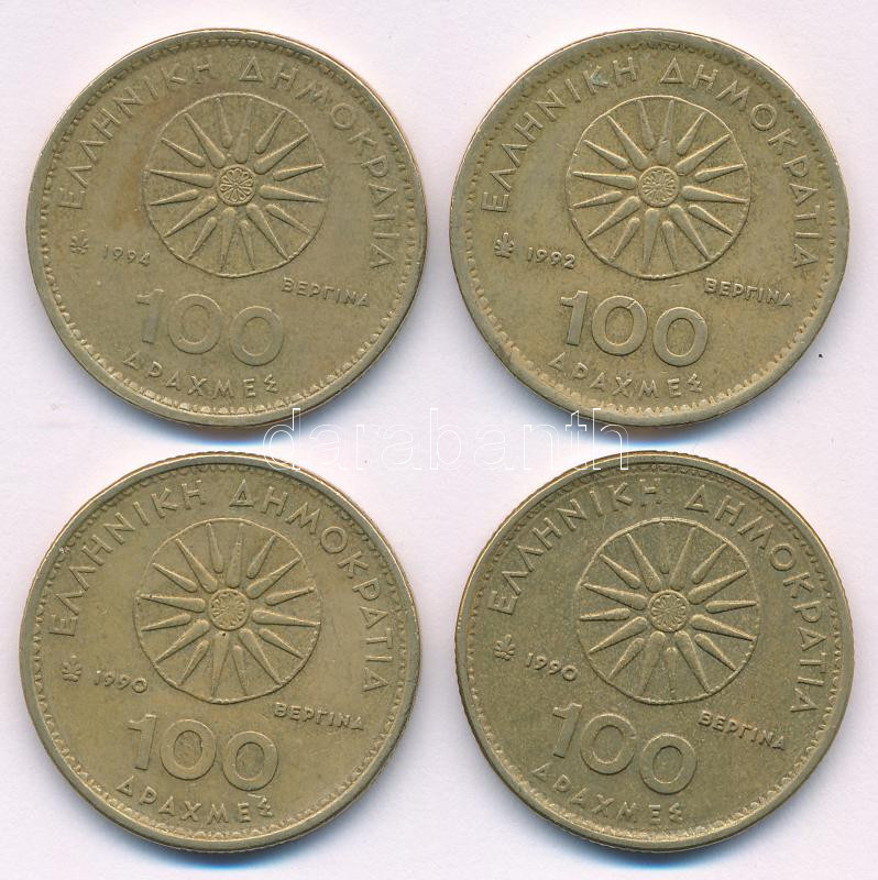 Görögország 1990-1994. 100D Al-bronz (4db/3xklf) T:XF,VF Greece 1990-1994. 100 Drachmes Al-bronze (4pcs/3xdiff) C:XF,VF