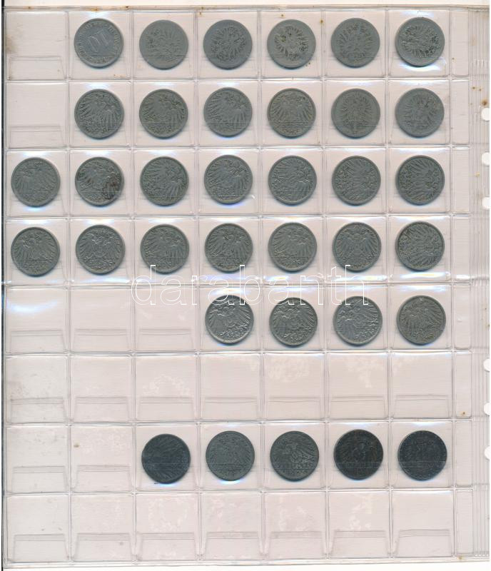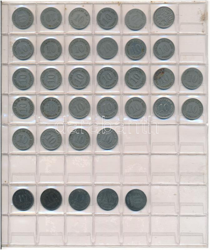 Német Birodalom 1873-1921. 10pf (35db, több klf évszám és/vagy verdejel) együtt, műanyag berakólapon T:XF-F