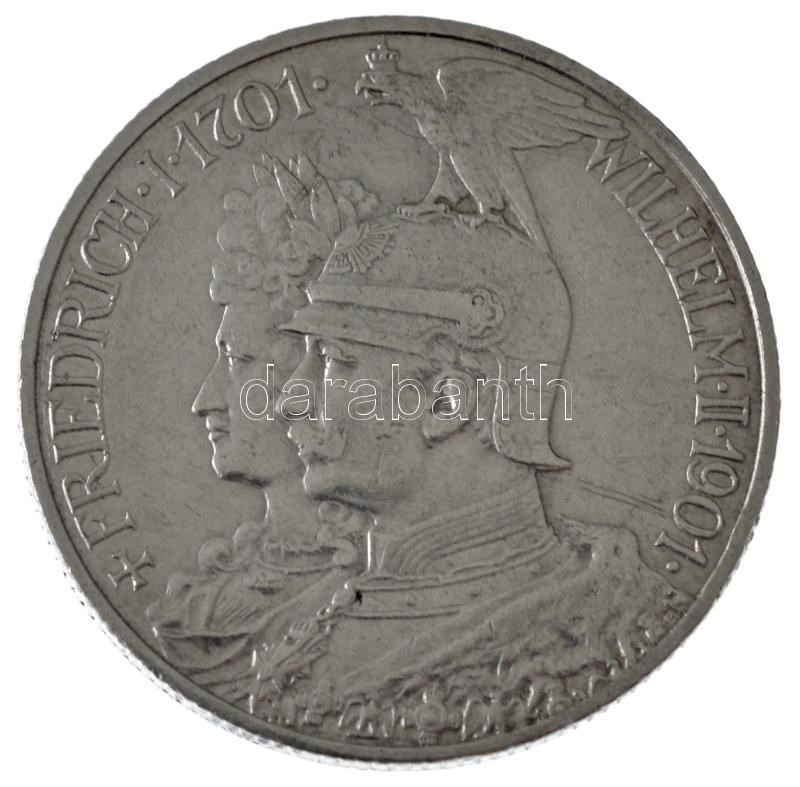 Német Birodalom / Poroszország 1901. 2M Ag "200 éves a királyság" T:AU,XF German Empire / Prussia 1901. 2 Mark Ag "200th Anniversary of the Kingdom of Prussia" C:AU,XF