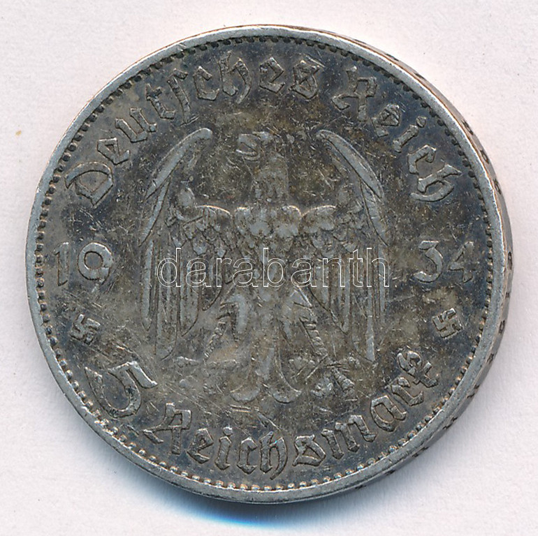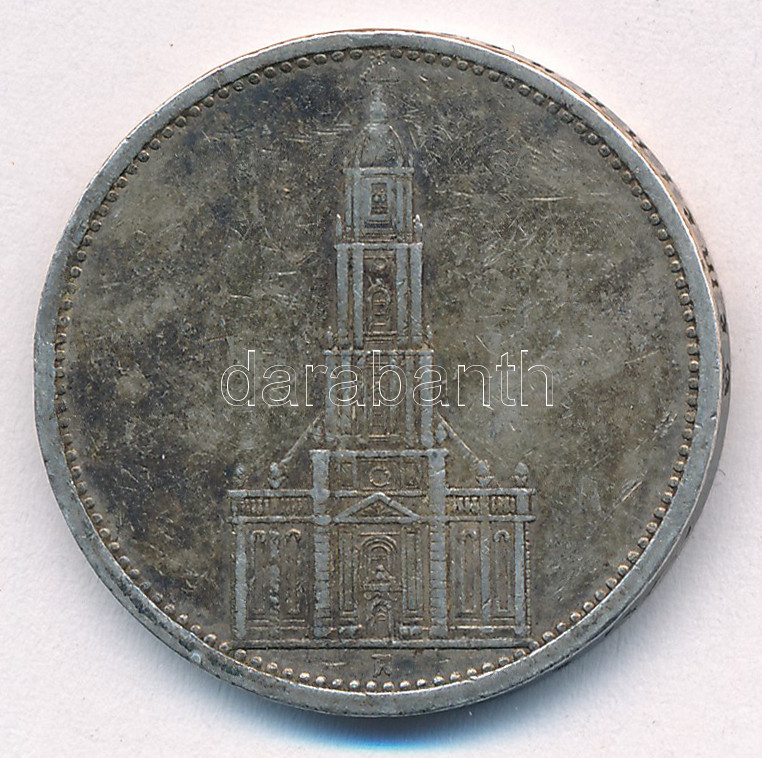 Német Harmadik Birodalom 1934A 5M Ag "Garnisonkirche" T:XF,VF patina German Third Reich 1934A 5 Reichsmark Ag "Garnisonkirche" C:XF,VF patina Krause KM#83