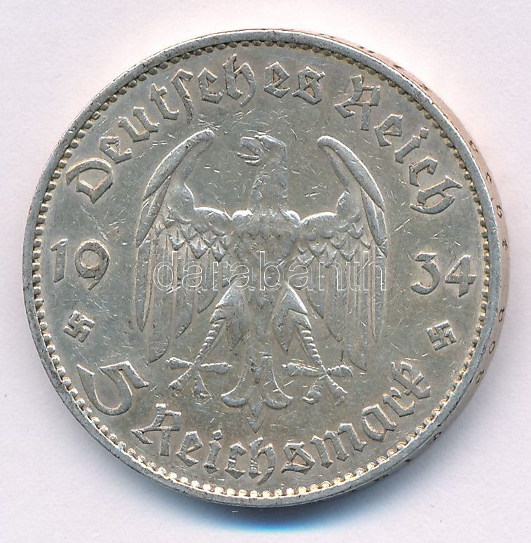 Német Harmadik Birodalom 1934F 5M Ag "Garnisonkirche" T:XF German Third Reich 1934F 5 Reichsmark Ag "Garnisonkirche" C:XF Krause KM#83