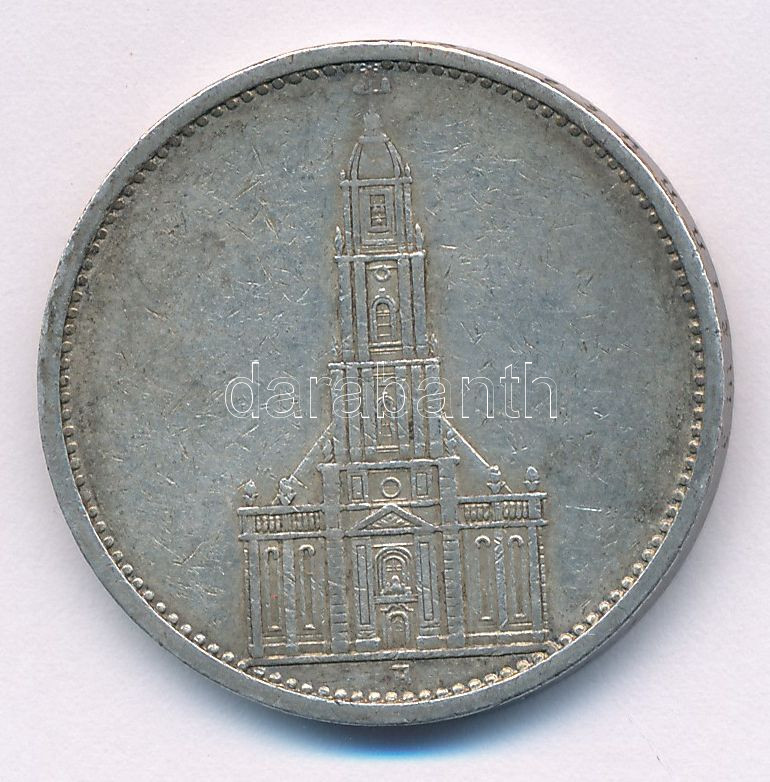 Német Harmadik Birodalom 1935A 5M Ag "Garnisonkirche" T:XF,VF patina German Third Reich 1935A 5 Marks Ag "Garnisonkirche" C:XF,VF patina