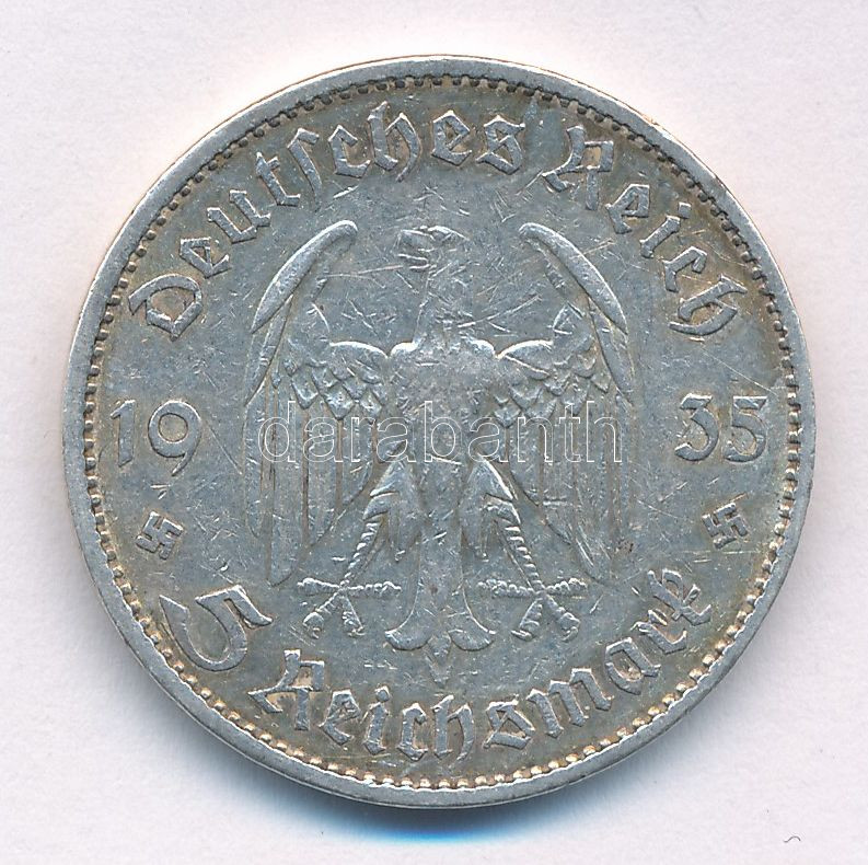Német Harmadik Birodalom 1935A 5M Ag "Potsdami Garrison templom" T:VF patina German Third Reich 1935A 5 Mark Ag "Potsdam Garrison Church" C:VF patina Krause KM#83