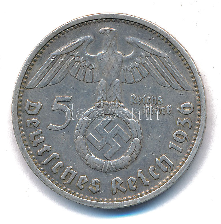 Német Harmadik Birodalom 1936D 5M Ag "Hindenburg" T:XF patina German Third Reich 1936D 5 Marks Ag "Hindenburg" C:XF patina