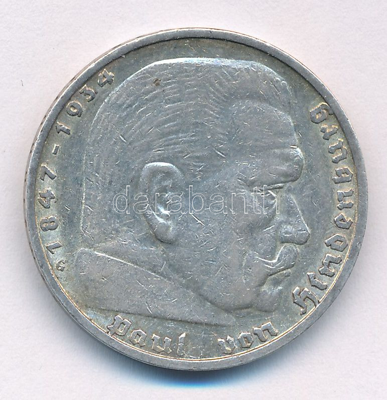 Német Harmadik Birodalom 1936G 5M Ag "Hindenburg" T:XF kis ph. German Third Reich 1936G 5 Reichsmark Ag "Hindenburg" C:XF small edge error Krause KM#86