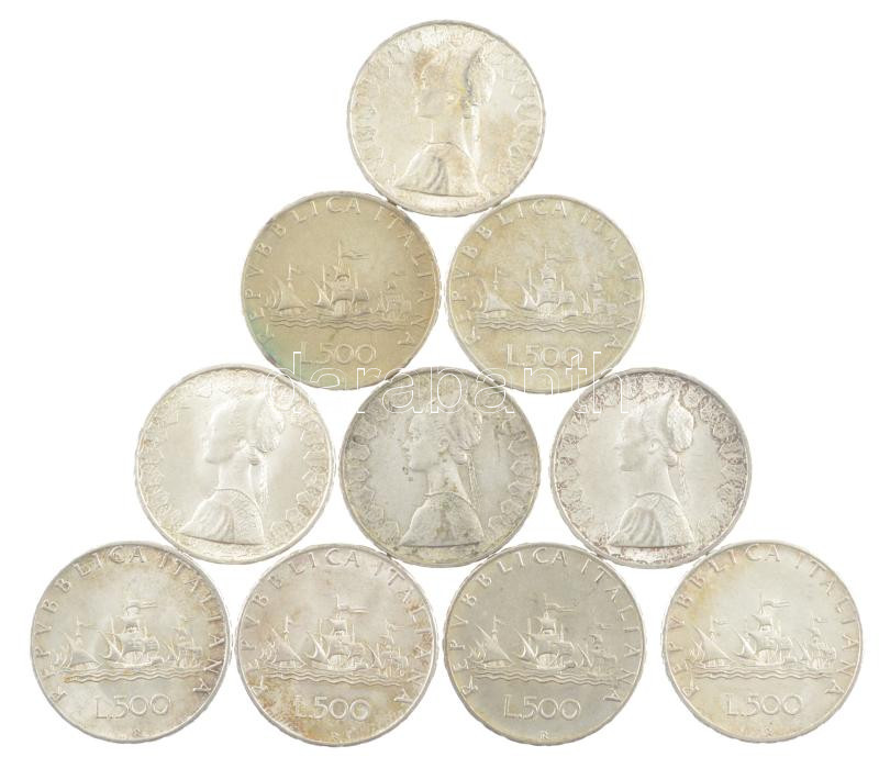 Olaszország 1966R 500L Ag "Kolumbusz hajói" (10x) T:2 patina Italy 1966R 500 Lire Ag "Columbus' Ships" (10x) C:XF patina Krause KM#98