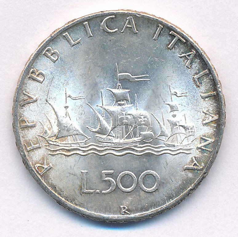 Olaszország 1966R 500L Ag "Kolumbusz hajói" T:1- patina Italy 1966R 500 Lire Ag "Columbus' ships" C:AU patina Krause KM#98