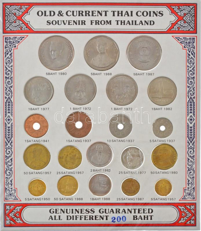 Thaiföld 1937-1988. 21db-os vegyes szuvenír érme szett kartonlapon T:U... https://www.darabanth.com/de/444-Fernauktion/444.0/Numismatik/Weltweit-Munzen~1000014/Thaifold-1937-1988-21db-os-vegyes-szuvenir-erme-szett-kartonlapon-TUNC-VF-Thailand-1937-1988-~II2925916