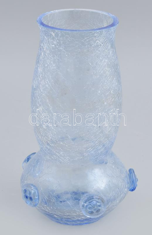 Karcagi kék kraklé üveg váza, kis pattanással, jelzés nélkül, m: 21 cm https://www.darabanth.com/de/444-Fernauktion/444.0/Porzellan-Keramik-Glass/Glaser~500009/Karcagi-kek-krakle-uveg-vaza-kis-pattanassal-jelzes-nelkul-m-21-cm~II2926762