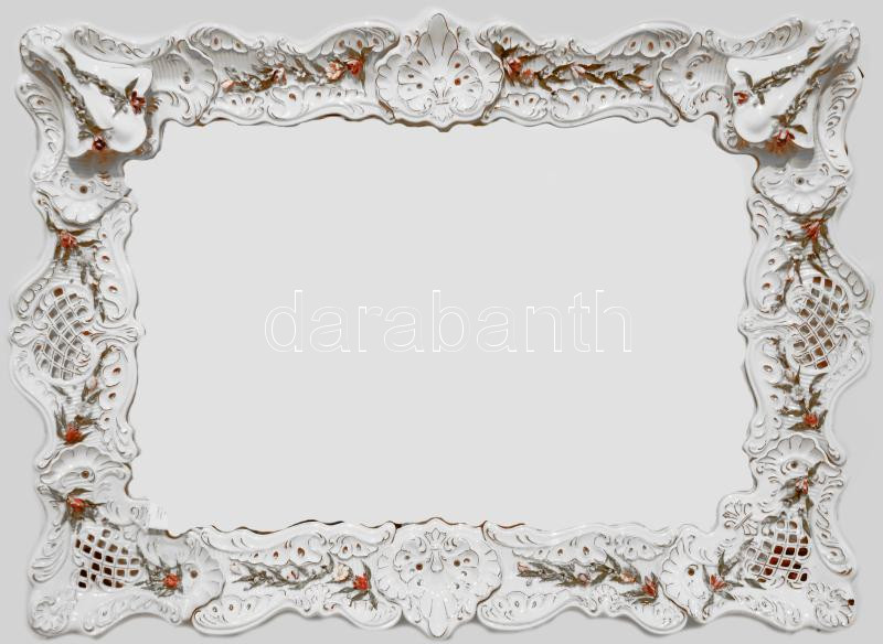 Óriás méretű porcelán keretes tükör, beépített világítással. Kézzel festett jelzett, egy elem repedt, plasztikus virágokon kis sérülésekkel 120x85 cm