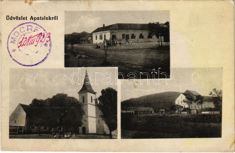 1923 Apatelek, Mokra, Mocrea; templom, utca / church, street view (EK) https://www.darabanth.com/de/445-Fernauktion/445.0/Ansichtskarten/Siebenburgen~2000006/1923-Apatelek-Mokra-Mocrea-templom-utca-church-street-view-EK~II2915784