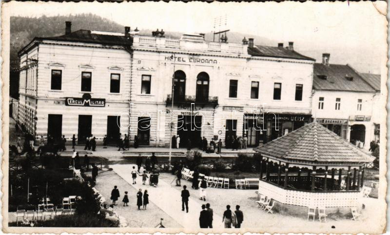 Beschreibung: 1943 Máramarossziget, Sighetu Marmatiei; Hotel Coroana szálloda és étterem, üzletek / hotel and restaurant, shops. photo (EK)