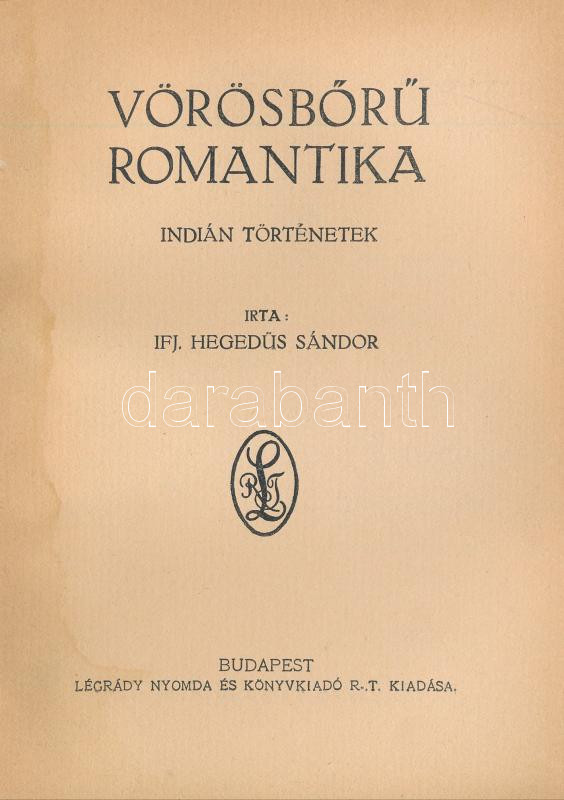 ifj. Hegedüs Sándor: Vörösbőrű romantika. Indián történetek. Bp., [192... https://www.darabanth.com/de/445-Fernauktion/445.0/Bucher/Bucher-Andere-kuriositaten~1500028/ifj-Hegedus-Sandor-Vorosboru-romantika-Indian-tortenetek-Bp-1927-Legrady-160-p~II2941700